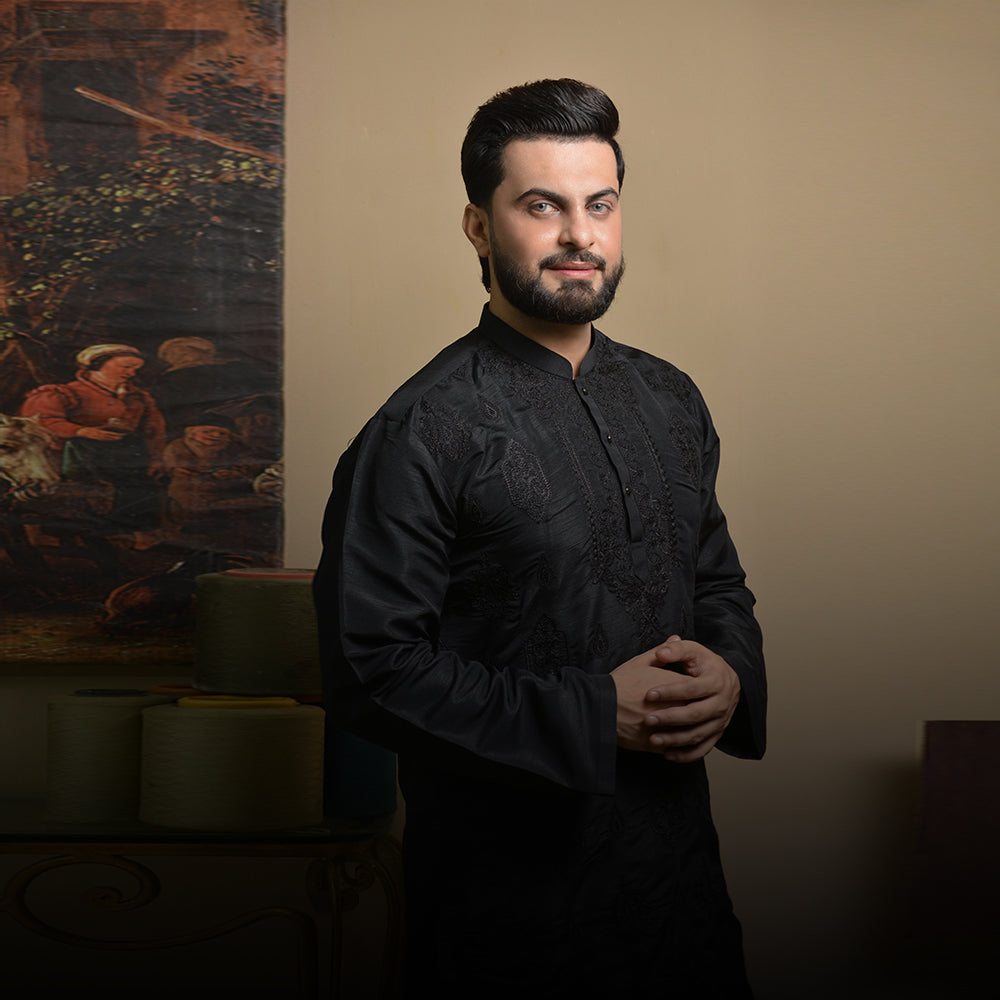 Black Premium Sherwani with Collar Hand Work – Full Set