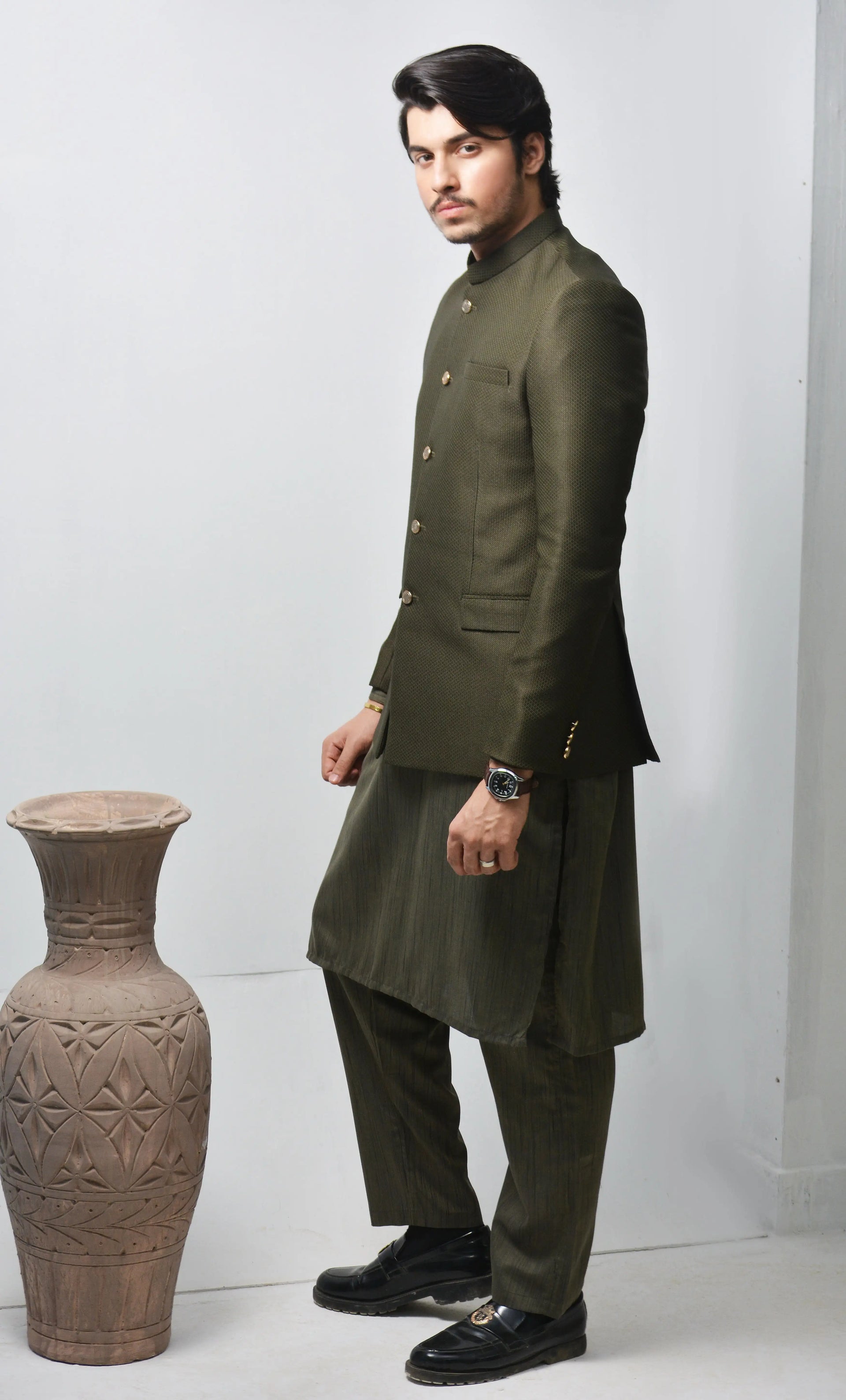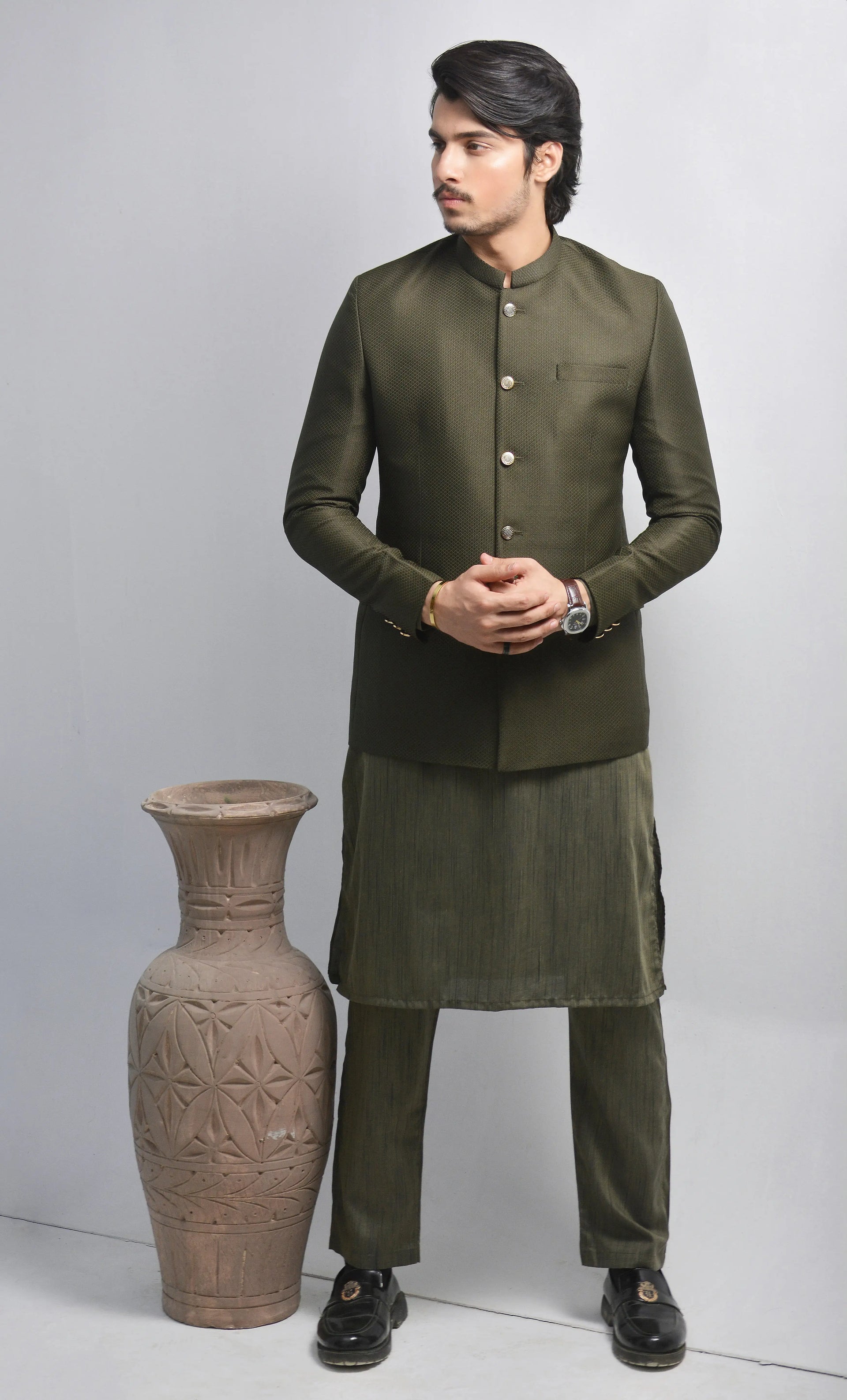 Color: D Green Fabric: Kambal Fabric Fit Type: Blended Product Category: Prince Coat Season: Spring Summer Collection Disclaimer: Due to the photographic lighting & different screen calibrations, the colors of the original product may slightly...