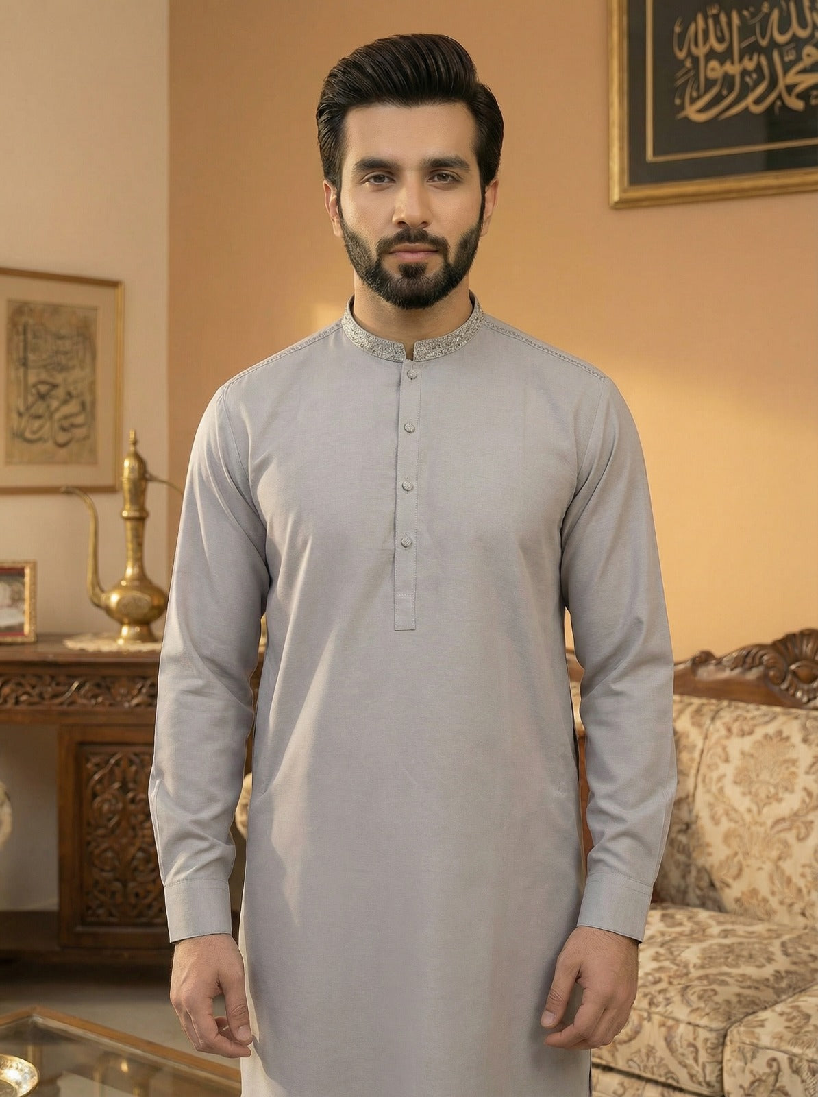 This ensemble is a masterclass in timeless grace and modern sophistication. Meticulously crafted from premium PC Cotton fabric, known for its exceptional durability and soft hand-feel, this piece is designed for the discerning man. The...