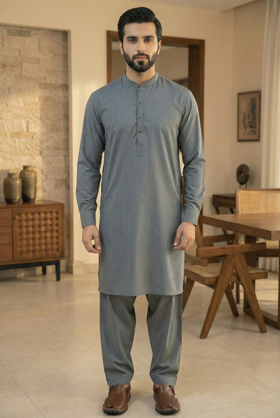 A perfect blend of comfort and class, this grey ensemble is designed for the modern man who values a refined, effortless look. Crafted from premium Wash & Wear fabric, it provides a crisp finish and...