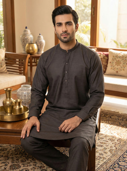 Product Description: This suit offers a rich, deep aesthetic perfect for formal indoor settings and evening events. The Wash & Wear fabric features a subtle, premium texture that adds depth to the overall look while remaining incredibly easy to maintain. Its refined design and comfortable sit make it a preferred choice for those who value both style and practicality in their everyday ethnic wear.